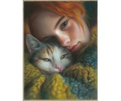 original painting 30 x 40 cm 149KO artwork pastel portrait of the immaculate virgin